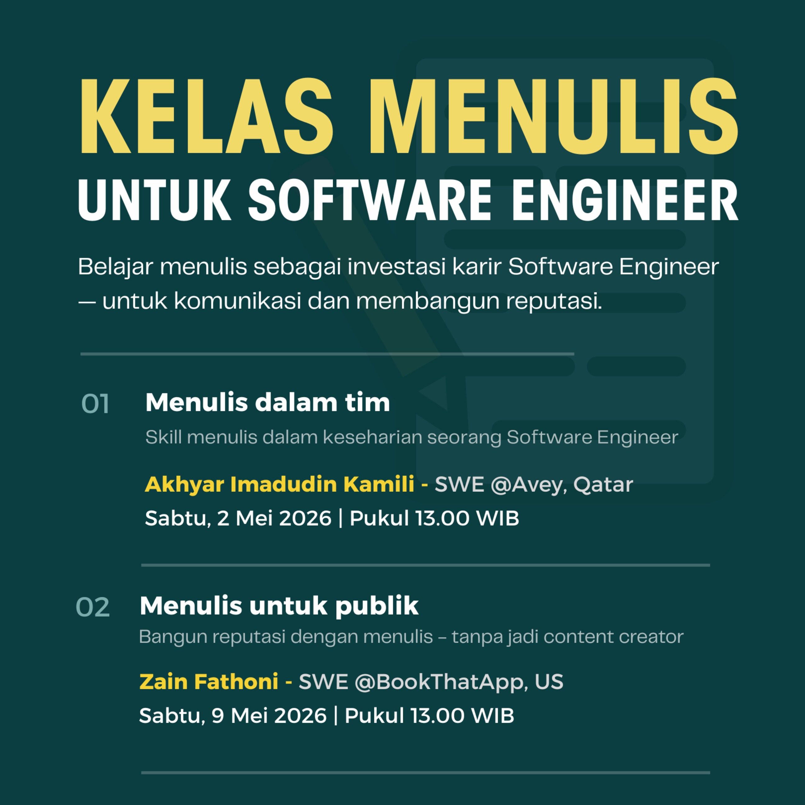 Belajar menulis sebagai investasi karir Software Engineer — untuk komunikasi dan membangun reputasi.